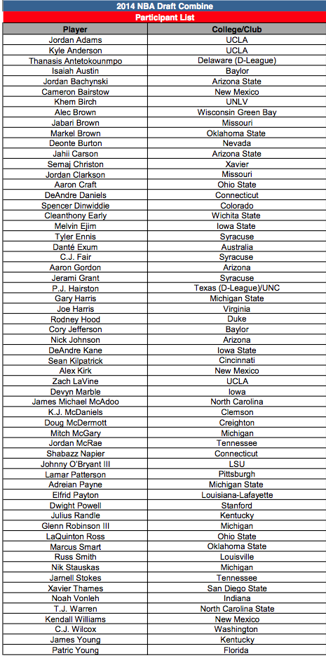 2014 NBA DRAFT COMBINE LIST / PARTICIPANTS